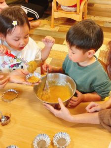 SDGsへの配慮から型も牛乳パックを使って手作り✂️し、生地を流し入れました✨